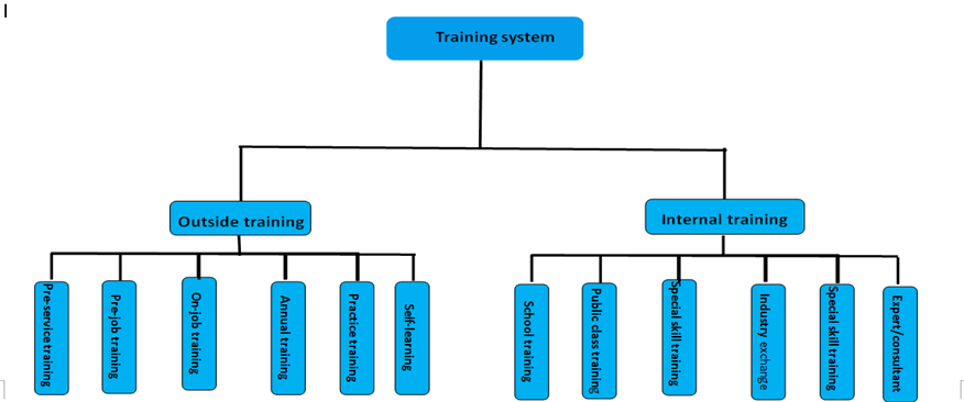 1.Training goal · Spread the company's strategic goal, company culture and prospect · On-the-job training and working guide · Technology, skill and knowledge training · Echelons talent training 2. Training system